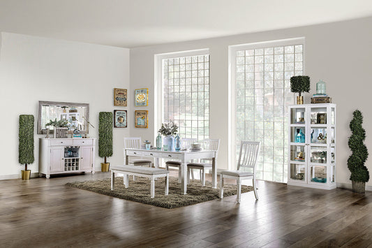 Kathryn Antique White 6 Pc. Dining Table Set w/ Bench