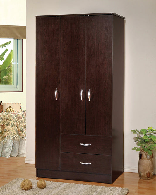 Wood Wardrobe Closet Armoire: 3 Doors, 2 Drawers