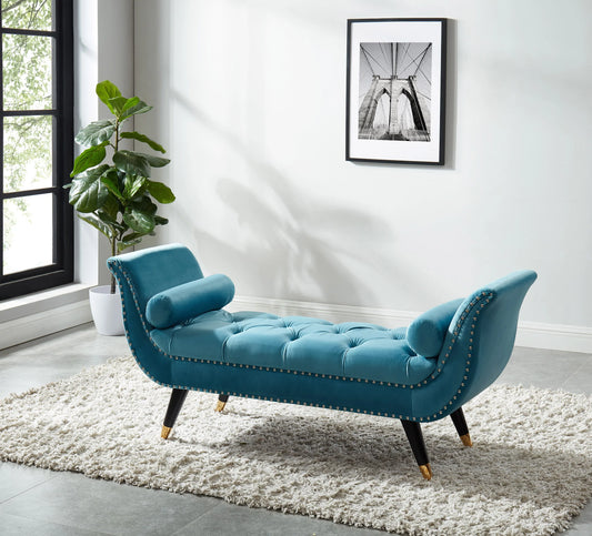 Elegant Arm Bench with 2 pillows & Nailhead Trim