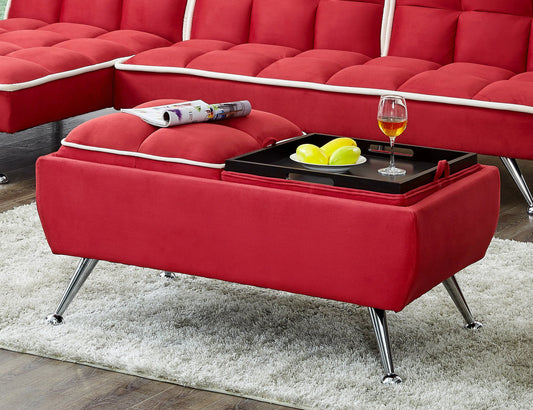 Flip Tray Ottoman red or grey fabric with chrome legs