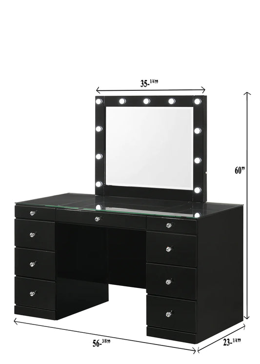 Avery LED Lights Vanity Set in Black by Crown Mark