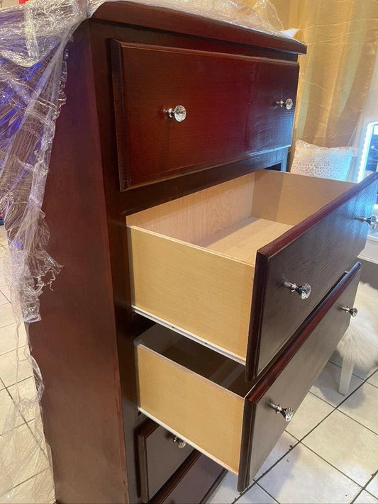 PINE SOLID WOOD CHEST 5 DRAWER WITH CRYSTAL KNOBS - CHERRY