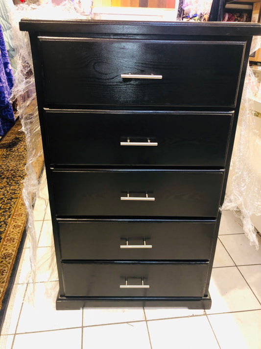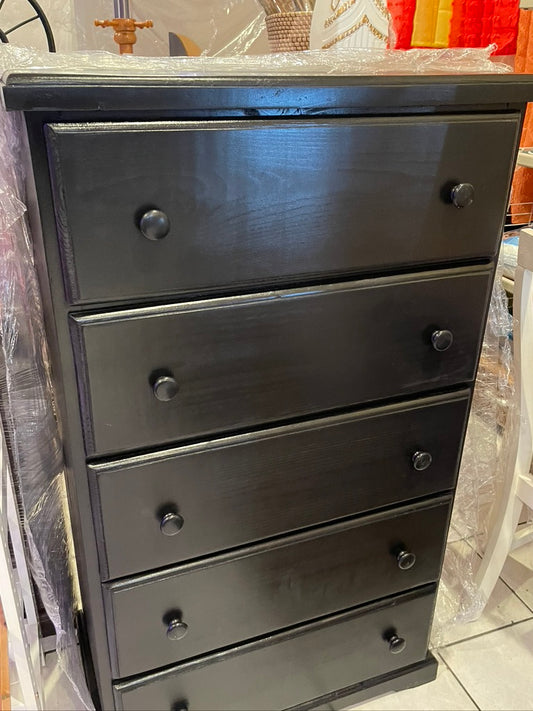 Black pine wood chest 5 drawers